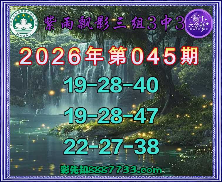 046期:《紫雨飘影》 🤩三组3中3🤩