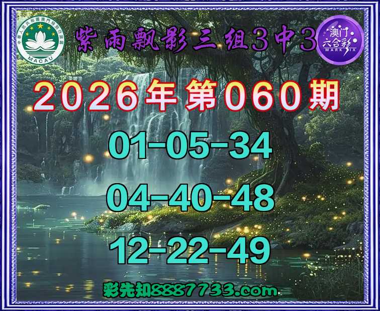 060期:《紫雨飘影》 🤩三组3中3🤩